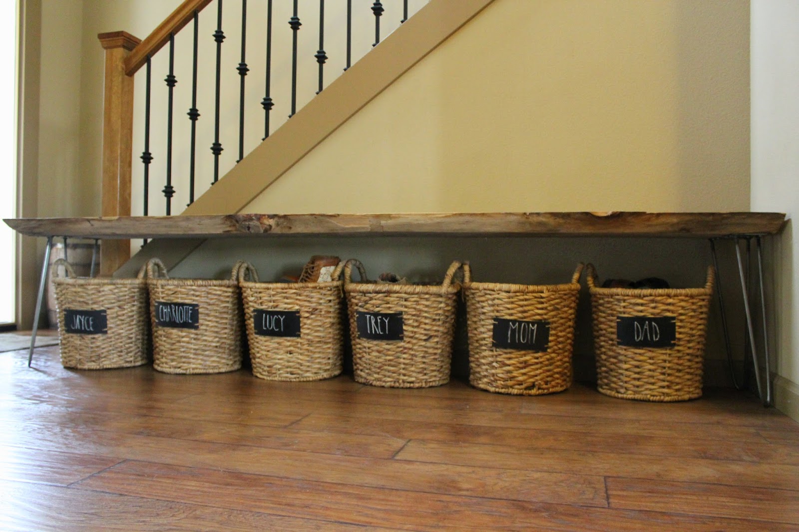 When we put an offer on our house it was a double loan short sale. It 6 months to hear back about wether or not the house would be ours. During that time my mind was busily thinking of ways to make our home functional. I wanted a place for EVERYTHING including our shoes that always seemed to be strewn about. These baskets at Target were one of the very first things I bought for our new home.