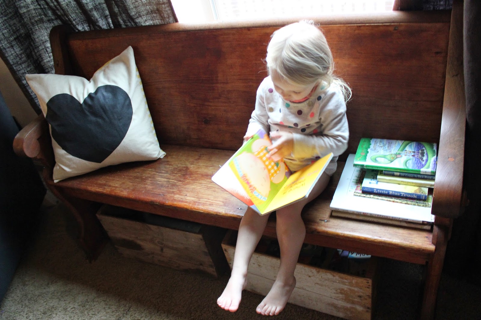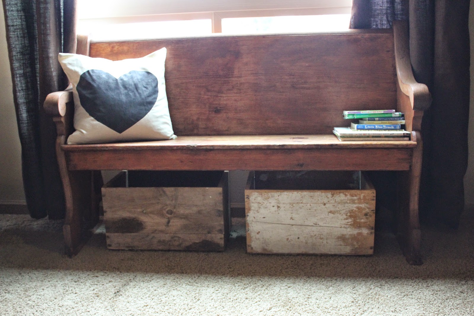 I am loving this bench and these shoe baskets in our home. The only thing I am sad about is that for the first year we lived here we just had the baskets and no bench...I miss throwing shoes from upstairs down into the baskets and every time I made it I would say to myself "still got it." :)