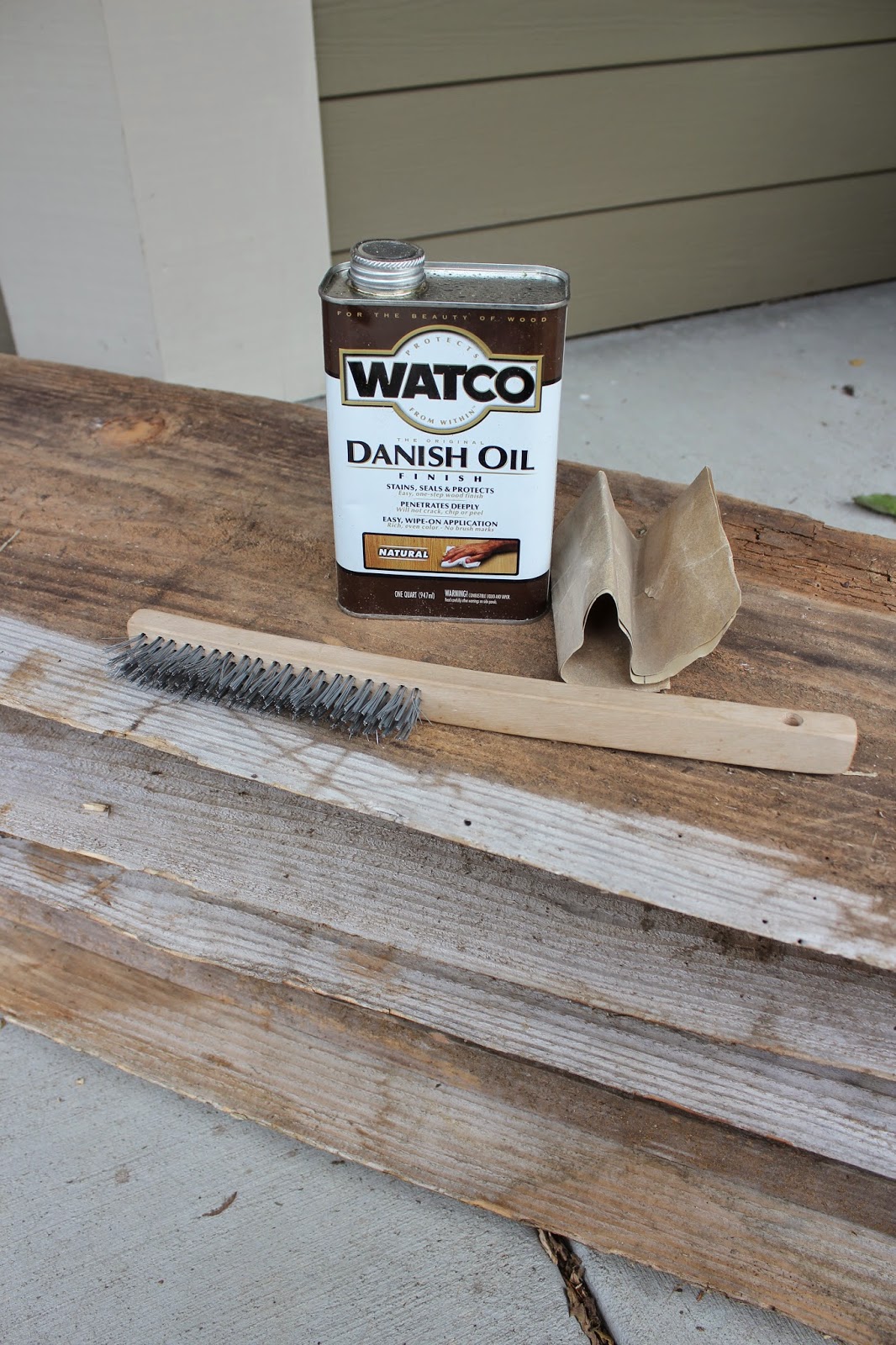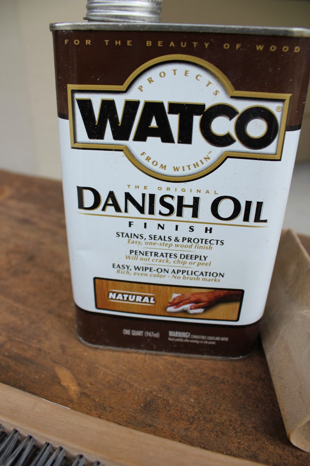 Then we used a cloth and rubbed this Natural Danish Oil on the wood to stain, seal, & protect it. The natural finish was awesome because it really kept the aged look of our wood.